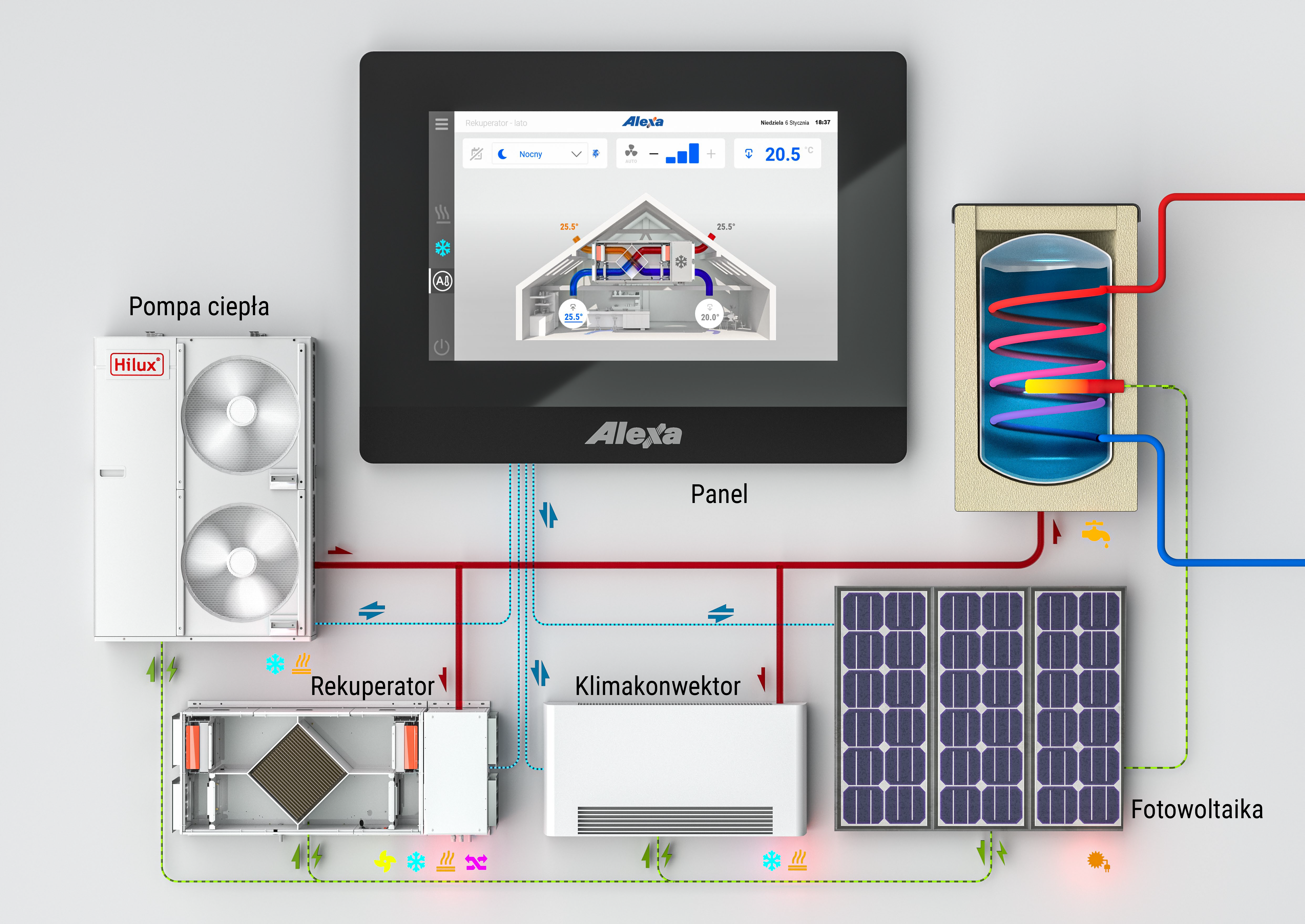 Jedyny system na rynku dający możliwość obsługi kompletnej instalacji grzewczo-wentylacyjno-klimatyzacyjnej wraz z systemem fotowoltaiki;